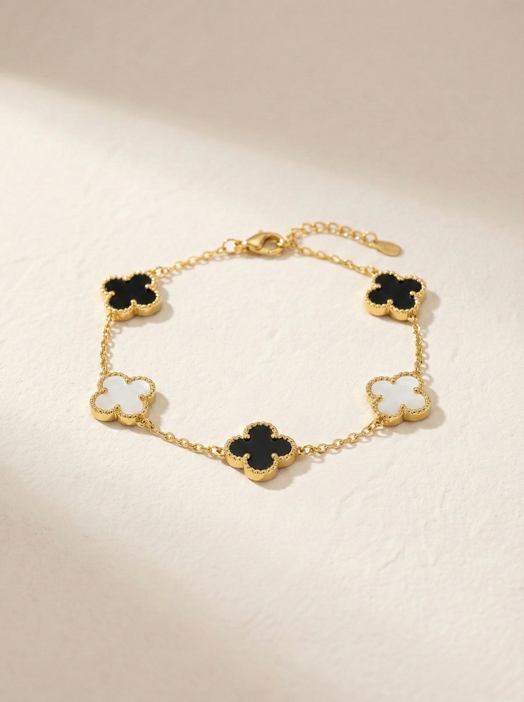 Clover Charm Bracelet – Black & White Enamel Gold Finish